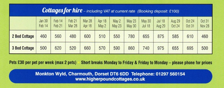 Mini Breaks Mon to Friday or Friday to Monday - Please phone for prices.